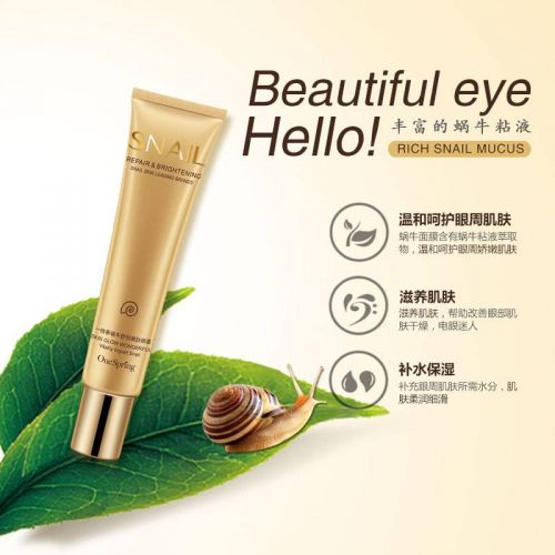 Крем для кожи вокруг глаз с экстрактом улитки омолаживающий от отеков ONESPRING Snail Repair&Brightening (20г) бережно ухаживает и омолаживает.